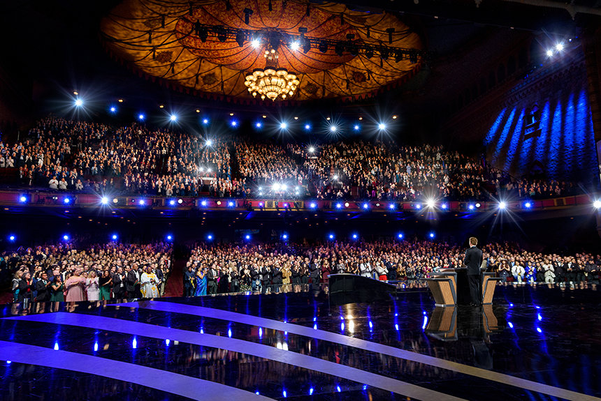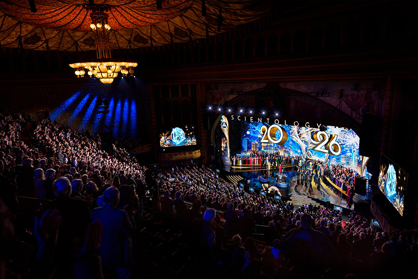 Desde el principio, la velada encarnó las características de una Celebración de Año Nuevo de Scientology: elegancia, expectación y un sentido de propósito. Vestidos con trajes de gala, más de 6500 invitados llenaron el histórico auditorio para rendir homenaje a las hazañas trascendentales de 2025, con la mirada puesta en un horizonte infinito que se desplegaba ante ellos.