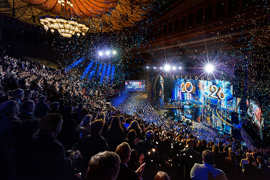 “Para la mayor parte del mundo, el Año Nuevo es algo que esperan. Cuentan los segundos, mirando el reloj, como si el tiempo fuera el que les dijera cuándo la vida empieza de nuevo”, dijo el Sr. David Miscavige, líder eclesiástico de la religión de Scientology. “Pero nosotros nunca hemos vivido el tiempo de esa manera. Mientras el resto del planeta sigue bajando el ritmo, nosotros estamos aquí por algo completamente diferente: para ver qué sucede cuando se desatan de golpe todos los logros de un año entero de Scientology”.