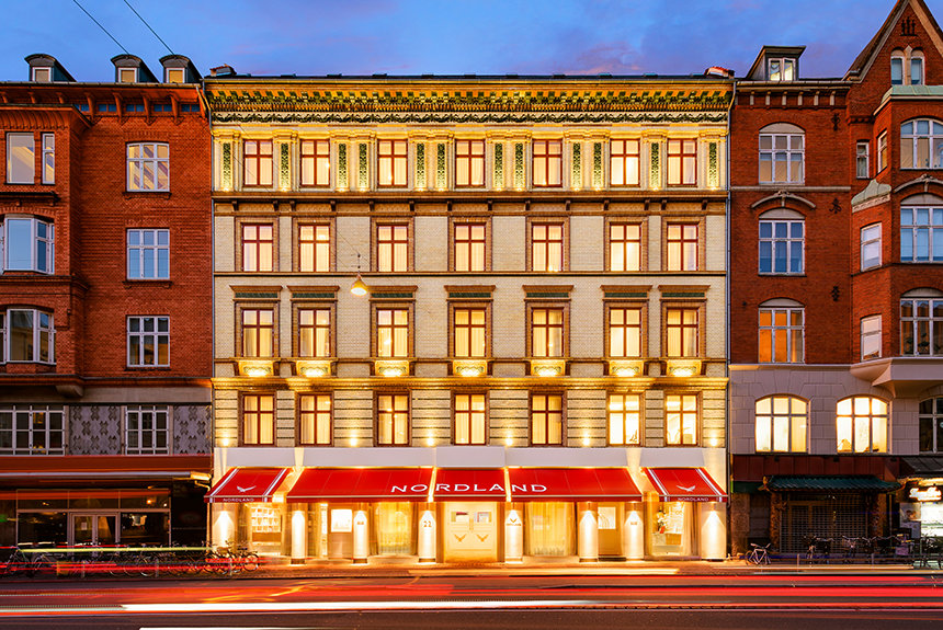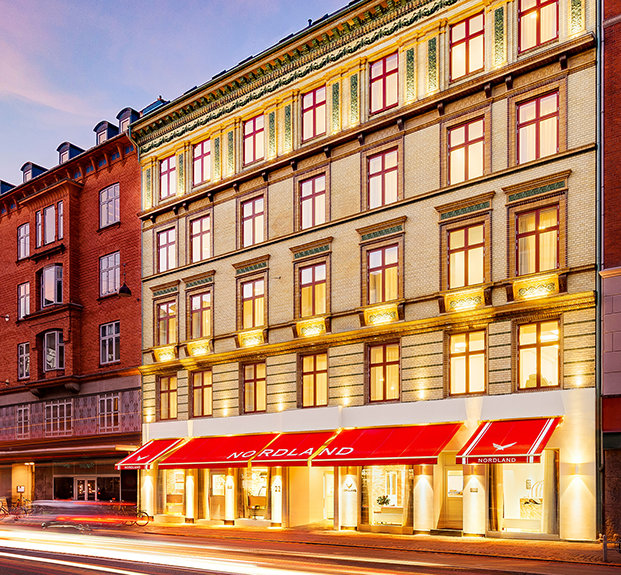 Nordland ocupa un edificio histórico neoclásico a pocos minutos de los emblemáticos Jardines del Tívoli de Copenhague, el segundo parque de atracciones más antiguo del mundo. El edificio, construido originalmente en 1889, ha sido completamente preservado por la Iglesia, incluyendo su techo de tejas y fachada de ladrillo y terracota. El patio del edificio de de ladrillo Copenhagen también fue restaurado a su condición prístina.