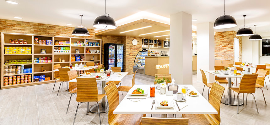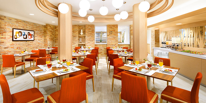 El retiro religioso tiene más de 70 habitaciones bien equipadas y tiene dos sitios donde comer, cada uno ofreciendo una selección diversa para satisfacer a los feligreses de unas 30 naciones. El Café Natur ofrece deliciosos aperitivos durante todo el día para los descansos de asesoramiento o entrenamiento de Scientology, mientras que el Restaurante Magnolia también da servicio a los feligreses, ofreciendo comida estilo bufé y servicio de mesa.