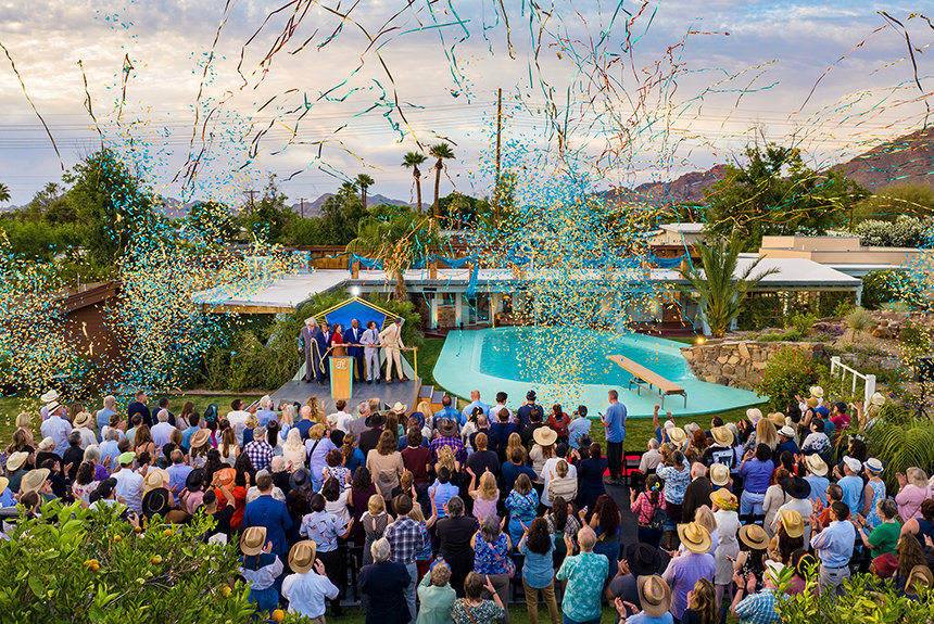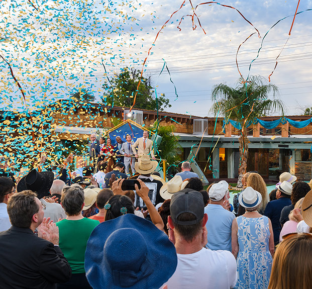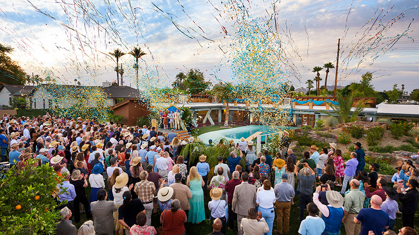 En una cálida tarde de sábado en el desierto, ese edificio histórico se abrió de nuevo, renacido como un Sitio Histórico de L. Ronald Hubbard. Un lugar de importancia internacional, aquí es “donde el futuro cambió para siempre”, dijo el Conservador Histórico de la Iglesia de Scientology, quien ofició el evento y supervisó la restauración histórica del sitio.