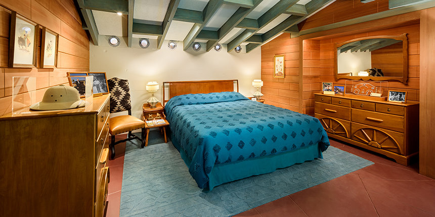 También están en exposición artículos personales, como el órgano de acordes Hammond S4 que el Sr. Hubbard disfrutaba tocando y su consola Coronado estéreo, que llenaba el aire con valses y jazz. En el exterior, incluso la Harley-Davidson Hydra-Glide azul glaciar y su Chevrolet Deluxe Station Wagon de 1951 han sido restaurados a su gloria vintage original.